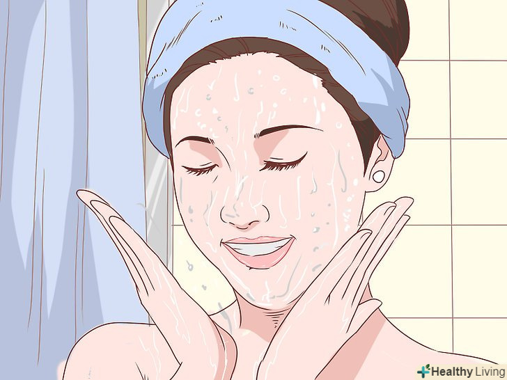 Мийте обличчя постійно, вранці і ввечері.Вмивайте обличчя, один раз вранці і один раз пізно ввечері, перш ніж лягти в ліжко. Видаліть макіяж з обличчя, перш ніж лягати спати.- Умивайте обличчя злегка. Не потрібно сильно терти, як ніби ви намагаєтеся видалити пляму з килима. Чим ніжніше, тим краще.
