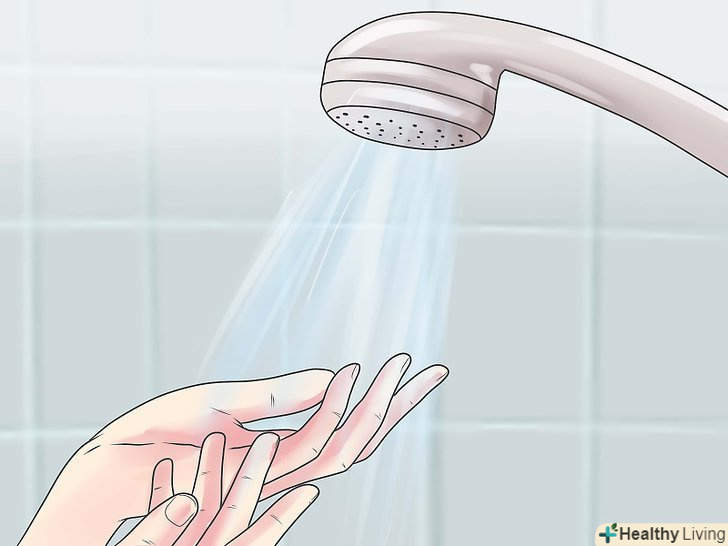 Прийміть холодний душ, щоб полегшити свербіж.свербіж можна швидко зменшити за допомогою холодного душу. Приймайте холодний душ протягом 5-10 хвилин-це допоможе полегшити свербіж приблизно на 2 години. Холодна вода зменшить шкірну чутливість, що допоможе позбутися від свербіння.[5]- Ще один спосіб полягає в тому, щоб прикласти до уражених місць лід. Загорніть пакетик з льодом в рушник, щоб не обморозити шкіру.