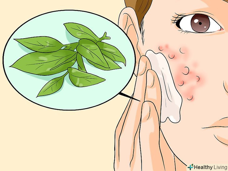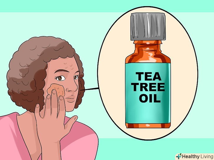 Нанесіть на уражені ділянки масло чайного дерева.Масло чайного дерева (Melaleuca alternifolia ) є хорошим антисептиком і протизапальним засобом, що робить його ще одним відмінним вибором для лікування симптомів розацеа. Занурте чисту ватяну паличку в пляшечку з маслом чайного дерева, а потім акуратно нанесіть його на запалені ділянки або пустули на обличчі.- Для початку наносите масло двічі в день і стежте за результатом.