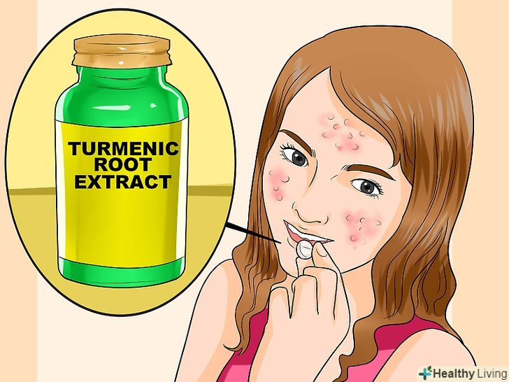 Спробуйте прийняти екстракт кореня куркуми.Куркума (Curcuma longa ) містить більш ніж 20 протизапальних складових, включаючи речовини, що пригнічують циклооксигеназу - 2 (фермент, який призводить до вироблення простагландинів, які викликають хворобливі відчуття, запалення і набряк). Куркума є основним інгредієнтом в індійських стравах з каррі і дає темно-жовтий колір.[6] екстракт куркуми можна купити у вигляді капсул.- Почніть з щоденного прийому 400-600 мг куркуми по три рази на день.