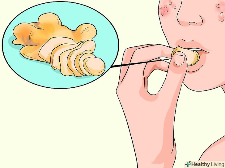 Спробуйте поїсти корінь імбиру.імбир (Zingiber officinale) містить активні фітонутрієнти, на зразок гінгерола і шогаола, які відповідають за сильні протизапальні властивості імбиру.[8] імбир можна їсти сирим, маринованим (поширене в ресторанах суші), у вигляді спеції або приймати як вітамінну добавку.- Приготуйте імбирний чай, заваривши кілька скибочок свіжого кореня імбиру у великій чашці гарячої води приблизно за п'ять хвилин до того, як випити.