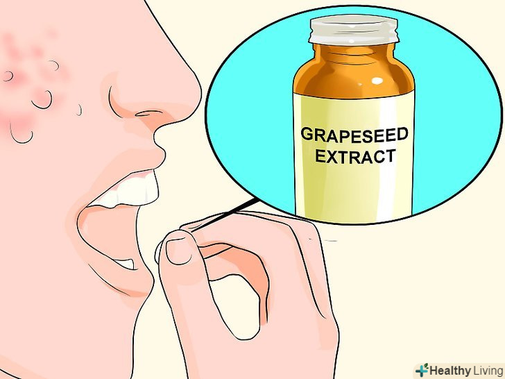 Прийміть добавку з екстрактом виноградної кісточки.екстракт виноградної кісточки сприяє формуванню колагену, який є еластичним компонентом шкіри. Виноградна кісточка також є хорошим антиоксидантом і протизапальним засобом, так що його можна покласти прямо на обличчя.- Почніть перорально приймати по 50 мг екстракту виноградної кісточки три рази на день.