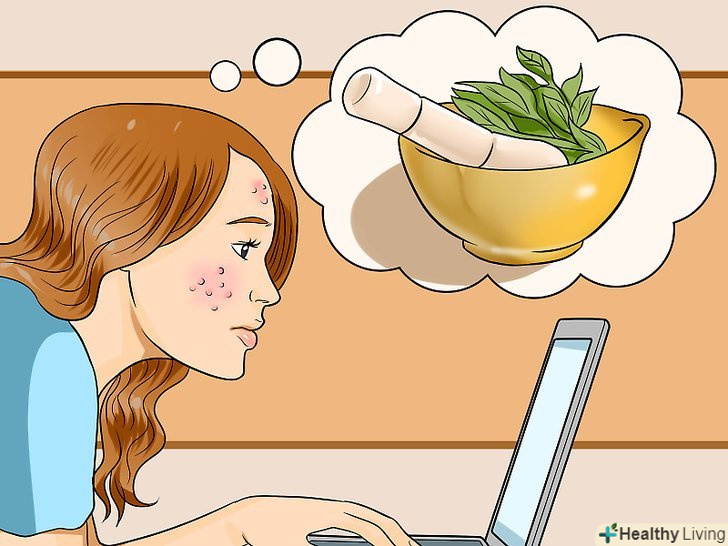 Вивчіть відповідні трав'яні засоби.більше дізнатися про рослинні засоби проти розацеа можна у дерматолога, але вам все одно варто провести деяке дослідження в Інтернеті, щоб дізнатися про найефективніші засоби.- Коли будете шукати медичну інформацію в Інтернеті, намагайтеся заходити тільки на перевірені медичні сайти або сайти, присвячені здоров'ю.