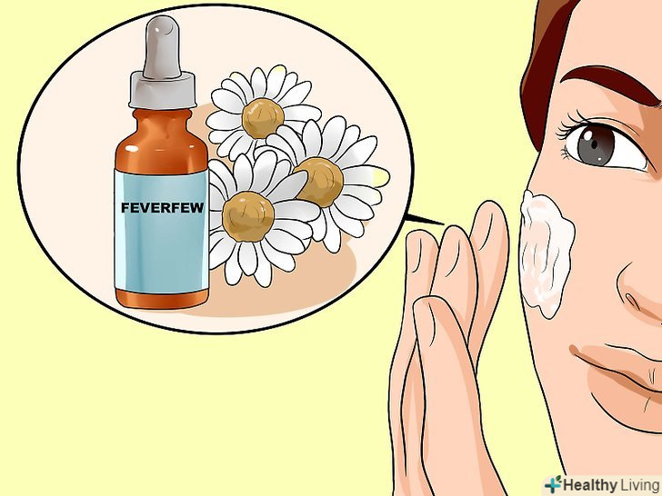 Нанесіть крем для шкіри, що містить екстракт квітки піретрум. Піретрум (Tanacetum parthenium) зменшує запалення, пригнічуючи ферменти Арахідонат 5-ліпоксигеназа і циклооксигеназа і знижуючи скупчення тромбоцитів в крові.[4]- Продукти з піретрумуНе можна давати вагітним або годуючим груддю жінкам, а також маленьким дітям.
