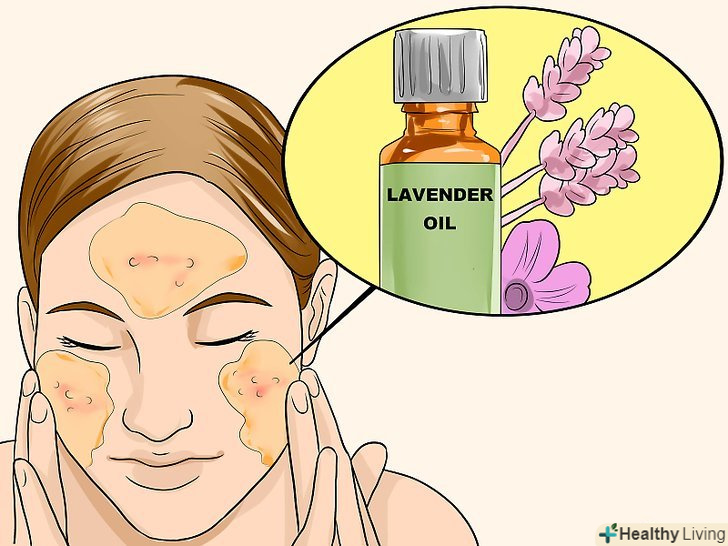 Нанесіть на уражені ділянки обличчя лавандове масло. Лаванда (Lavandula angustifolia) також може виявитися корисною при хворобливих і запальних захворюваннях шкіри. Після того, як ви вимиєте і насухо витріть обличчя, занурте ватяну кульку в лавандове масло і ніжно круговими масажними рухами втирайте його в проблемні ділянки на обличчі, наприклад, на ніс (у людей, хворих на розацеа, ніс часто стає червоним і округлим). Повторюйте кожен день.- Почніть з невеликої кількості масла, щоб перевірити, чи немає у вас алергії, оскільки у деяких людей лаванда викликає сильне роздратування на шкірі.