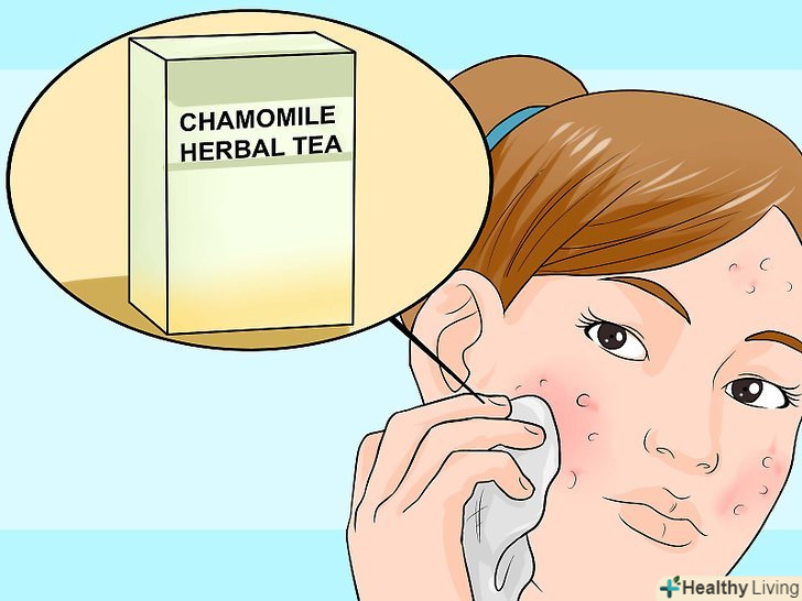Спробуйте нанести на обличчя продукти з промашки.нанесіть на обличчя охолоджений ромашковий чай. Він має заспокійливі, м'які протизапальні та антибактеріальні властивості. Заваріть трохи ромашкового чаю, поставте його на кілька годин в холодильник, а потім вилийте трохи чаю на невеликий рушник для обличчя і використовуйте його як холодний компрес. Ромашка також може входити до складу кремів і мазей.- Ромашку часто використовують в деяких косметичних продуктах.
