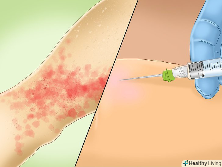 Зверніться до лікаря.при появі петехій, особливо, якщо вони супроводжуються незрозумілими синцями, завжди краще звернутися до лікаря.[10] і хоча петехії зазвичай заживають самостійно при відсутності будь-яких захворювань, завжди буде корисним з'ясувати, чи немає яких-небудь інших прихованих причин їх виникнення.[11]- Особливо важливо звернутися до лікаря, якщо петехії з'явилися у дитини без очевидних причин. Вкрай важливо звернутися до лікаря, якщо петехії охоплюють досить велику поверхню тіла.[12]