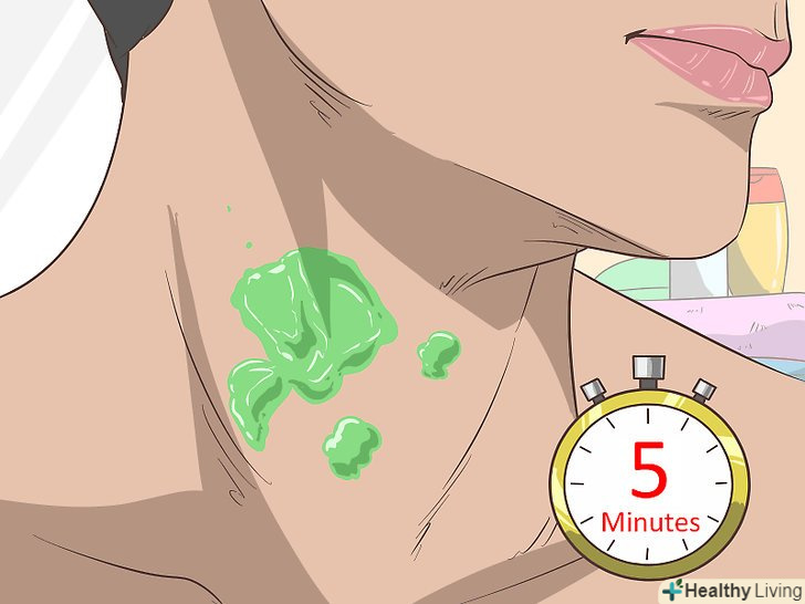 Нанесіть приготовлену пасту на шию.якщо ви збираєтеся обробити всю шию, можна нанести на неї приготований розчин за допомогою пальців. Якщо ж ви хочете обмежитися окремими ділянками, використовуйте ватяну паличку або ватяну кульку.[17]