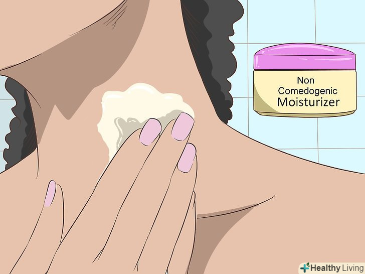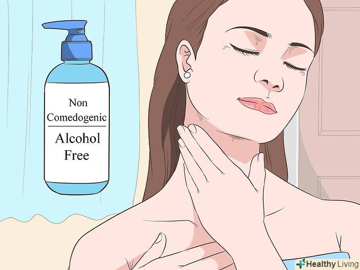 Використовуйте для миття шиї м'який миючий засіб.підберіть м'який миючий засіб з позначкою "некомедогенное" або "без масла". Засоби не закупорюють пори шкіри і завдяки цьому допомагають позбутися від вугрів.[2]- Вивчіть етикетку і переконайтеся в тому, що даний засіб некомедогенно.