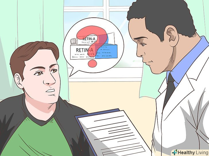 У випадку сильного вугрів, подумайте про використання ізотретиноїну.цей сильнодіючий препарат слід приймати лише в тому випадку, якщо не допомогли інші методи. За допомогою ізотретиноїну можна очистити шкіру від сильної вугрової висипки за пару місяців, проте його застосування пов'язане зі значним ризиком і може призвести до наступних ускладнень:[24]- Виразковий коліт;