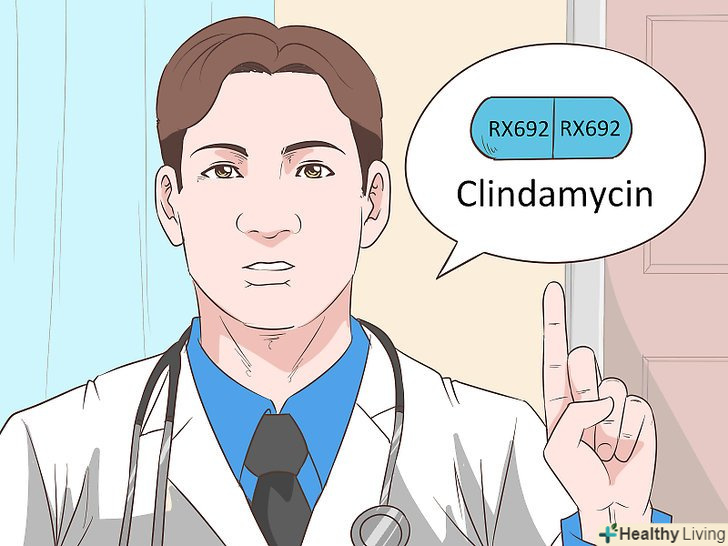Порадьтеся щодо використання антибіотиків.лікар може призначити Рецептурні антибіотики для місцевого застосування, наприклад кліндаміцин, які дозволять знищити бактерії. Це може викликати почервоніння шкіри. Такі засоби необхідно наносити двічі на день поряд з бензоїлпероксидом, який запобіжить звикання бактерій до антибіотика.[21]