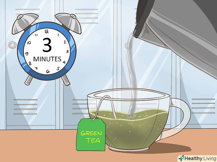 Заваріть склянку (250 мілілітрів) зеленого чаю.було виявлено, що екстракт зеленого чаю допомагає позбутися від вугрової висипки. Повинен допомогти і простий відвар зеленого чаю.[8] можна заварити листовий зелений чай в сіточці або використовувати пакетик зеленого чаю.- Візьміть кухоль і покладіть в неї пакетик або сіточку з чаєм.