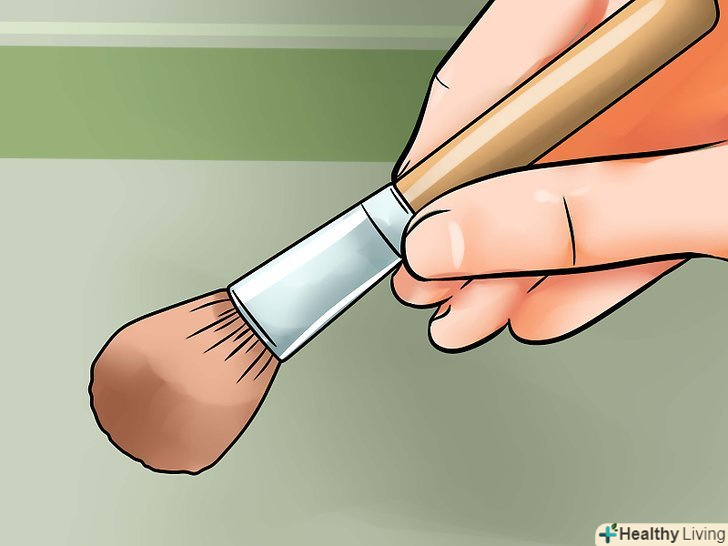 Використовуйте пудру, щоб маскувати консилер.Наносите пудру рівномірно, щоб вирівняти колір. Не поєднуйте щільний тональний крем з пудрою і рум'янами, оскільки вони можуть агресивно впливати на чутливу шкіру.[18] під час фази запалення використовуйте мінімум косметики.