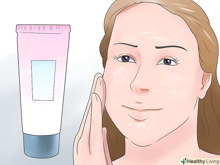 Вмивайтеся акуратно.спочатку видаліть з обличчя косметику засобом для демакіяжу або спеціальною серветкою. Вмивайтеся чистими руками, а не губкою, оскільки губка може викликати роздратування. Використовуйте м'який засіб для вмивання з перекисом бензоїлу. Вмивайтеся теплою водою-гаряча може висушити шкіру і викликати роздратування. Якщо вода буде занадто холодною, пори закриються.[1]- Вмивайтеся двічі на день: вранці і на ніч, щоб змити косметику. Не мийте шкіру обличчя занадто часто, оскільки це може викликати роздратування і посилити висип.