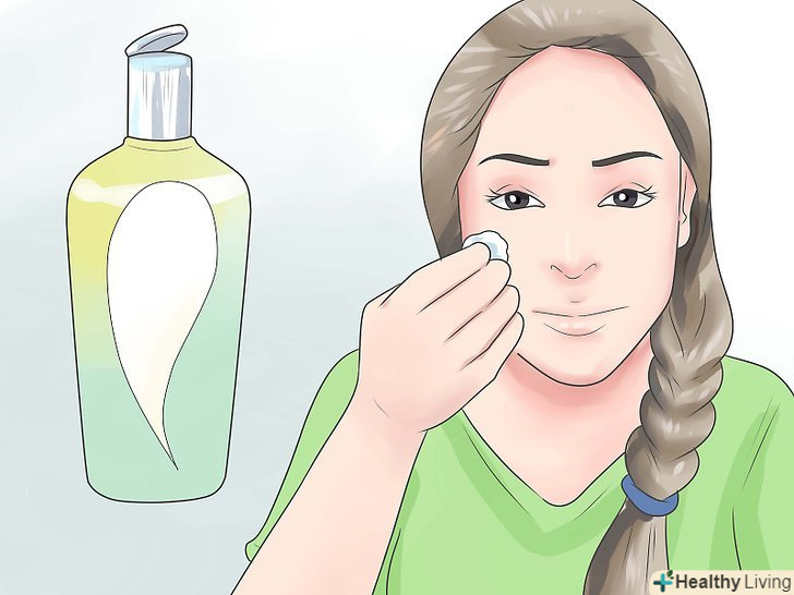 - Якщо ви не можете відмовитися від макіяжу, намагайтеся змивати косметику якомога швидше. Води і мила буде недостатньо. Вмивайтеся теплою водою з м'яким засобом для вмивання і не забувайте змивати всі сліди декоративної косметики.[17] щоб шкіра заживала швидше, робіть це кожен день. Ретельно змивайте засіб для вмивання.