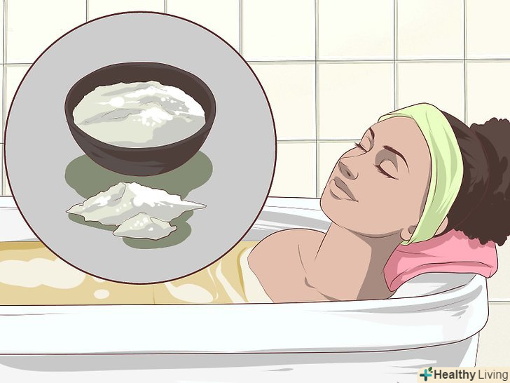 Приймайте ванну з морською сіллю.морська сіль допомагає боротися з акне, оскільки вона очищає шкіру і знищує бактерії, що викликають висип. [12] наберіть у ванну води і висипте у воду склянку (250 мілілітрів) морської солі.Щоб сіль швидше розчинилася, можна висипати її під воду, що тече з крана. Пориньте грудьми у воду і посидьте 10-15 хвилин.- Зробіть компрес з морської солі. Розмішайте три столові ложки солі в склянці води (250 мілілітрів). Заважайте ретельно, щоб сіль повністю розчинилася. Умочіть в воду шматок тканини і прикладіть до грудей. Залиште на шкірі на 3-4 хвилини, приберіть тканину і промийте шкіру. Можна робити компреси до 4 разів на день.[13]