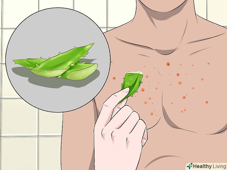 Обробляйте шкіру алое вера.сік алое має антибактеріальні та протизапальні властивості, а також прискорює загоєння. Щоб позбутися від вугрової висипки, відріжте гілочку алое і видавіть з неї рідину прямо на вугри.[14]