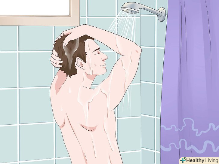 Приймайте душ або ванну раз в день.при лікуванні акне рекомендується приймати душ часто, не рідше разу на день. Це дозволить змивати з шкіри бактерії, бруд і Піт. Використовуйте щадний засіб для душу, бажано некомедогенное – це означає, що засіб не сприяє утворенню прищів. Спробуйте засоби марки Neutrogena, Cetaphil або Olay.[15]- Якщо ви багато потієте (наприклад, через занять спортом), приймайте душ після фізичних навантажень.