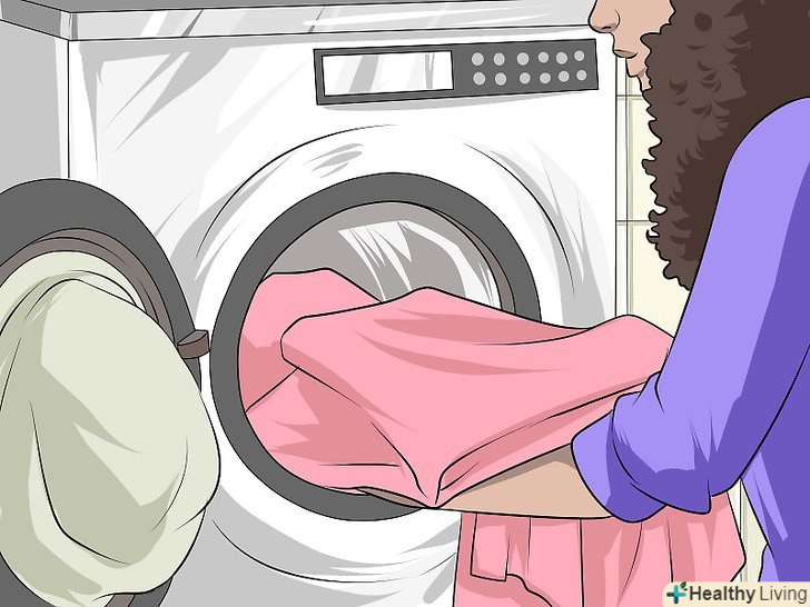 Регулярно періть постільну білизну та одяг.щоб швидше позбутися від висипу, слід частіше прати тканини, які стикаються зі шкірою. Піт і бруд забивають пори. Якщо носити брудний одяг, нижню білизну (ліфчики) або спати на брудній білизні, бактерії з тканини будуть потрапляти на шкіру і викликати вугровий висип. Не носіть одяг кілька днів-періть її відразу, особливо якщо ви в ній спітніли.[16]- Важливо також регулярно прати постільну білизну-раз на тиждень або кожні кілька днів. Все буде залежати від того, спите ви без одягу і сильна у вас висип. Під час лікування акне слід прати білизну частіше, ніж зазвичай. Коли висип пройде, періть його раз в тиждень.