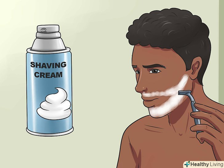 Користуйтеся кремом для гоління. Крем для гоління пом'якшить ваше волосся і знизить ймовірність утворення врослого волосся. Нанесіть шар крему для гоління на шкіру і почекайте кілька хвилин, перш ніж почати голитися.[15]