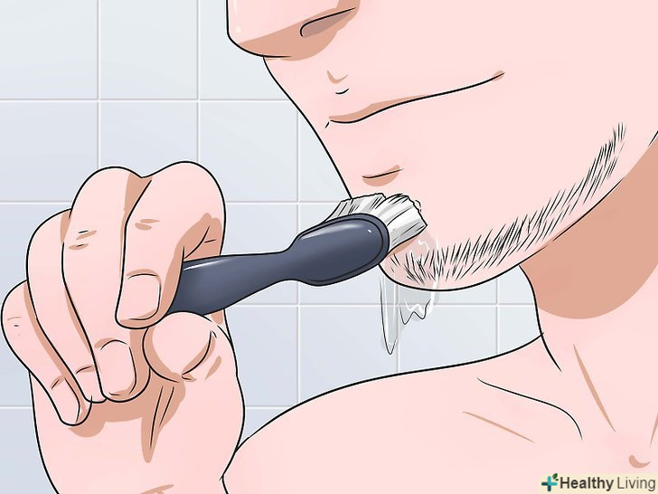 Скористайтеся зубною щіткою з м'якою щетиною або м'якою мочалкою для обличчя.Щетинки зубної щітки і тканину мочалки дозволять видалити частинки омертвілої шкіри і звільнити застряглий волосся. Нанесіть на зубну щітку або мочалку трохи засобу для вмивання або некомедогенного масла і м'якими круговими рухами пройдіться по шкірі.[3]