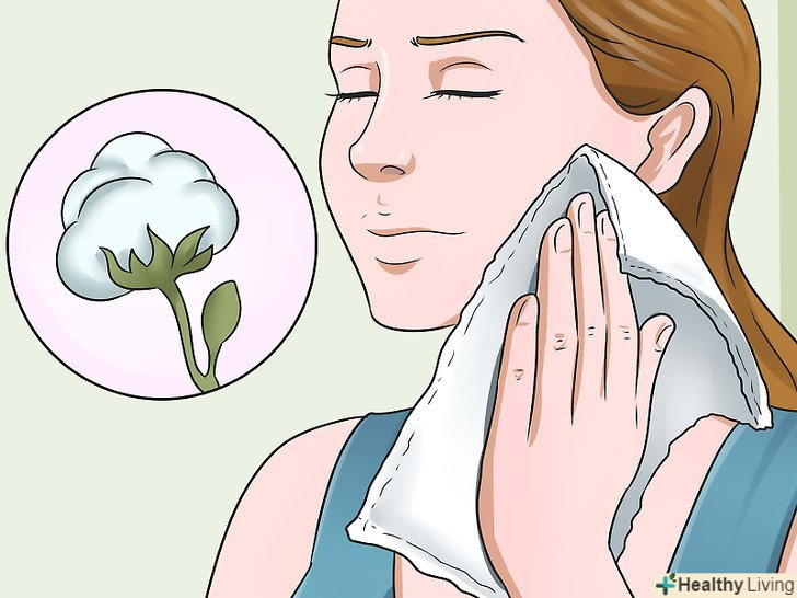 Промокніть шкіру бавовняним рушником.Насухо промокніть шкіру, щоб не потурбувати запалений прищ. Ні в якому разі не тріть шкіру рушником, а лише ніжно промокніть обличчя.[6]