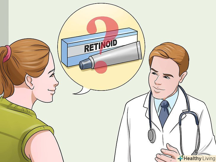 Дізнайтеся у лікаря-дерматолога про ретиноїди.Над прищем можуть зібратися омертвілі клітини шкіри, через які зовні шкіра стане виглядати товщі і темніше. Ретиноїди допоможуть позбутися від омертвілої шкіри, завдяки чому гнійничок швидше заживе. Ретиноїди відпускаються тільки за рецептом, так що попросіть дерматолога виписати його вам.[9]