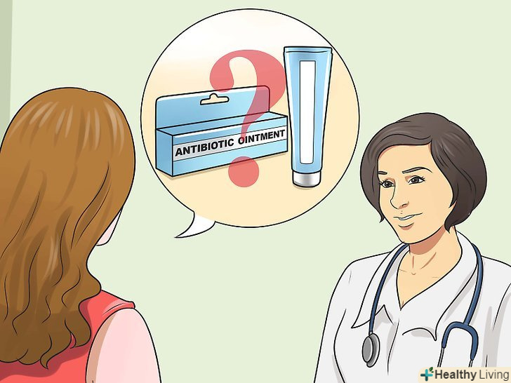 Проконсультуйтеся з лікарем з приводу мазей з антибіотиками.прищі, що утворилися в результаті запалення волосяного фолікула, схильні до інфекцій — мазі з антибіотиками допоможуть тримати їх під контролем. Якщо в прищі виникне сильна інфекція, лікар може призначати пероральний антибіотик.[11]- Користуйтеся мазями з антибіотиками і приймайте таблетки згідно з вказівками лікаря.