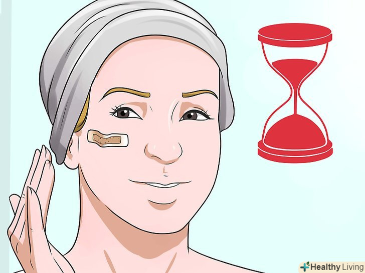 Будьте терплячими.як правило, врослі волосся проходять самі по собі, тому лікар може порадити Вам залишити їх у спокої.[12] якщо прищ турбує вас, заклейте його лейкопластиром (але не дуже щільно), поки той не заживе.- В очікуванні, поки прищ заживе, не вищипуйте, не видаляйте воском і не голіть волосся в цьому місці, інакше роздратування лише посилиться.[13]