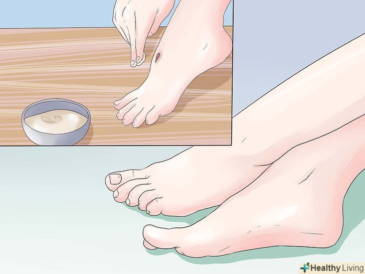 Прикладайте до струпу пасту з харчової соди.харчова сода являє собою м'який антисептик і є відмінним засобом проти струпів. Щоб отримати пасту, змішайте 10 грамів харчової соди з 100 мілілітрами води. Нанесіть пасту на скоринку, залиште на 10-15 хвилин і потім промийте теплою водою.[8]- Пасту з харчової соди можна наносити 2-3 рази на тиждень.