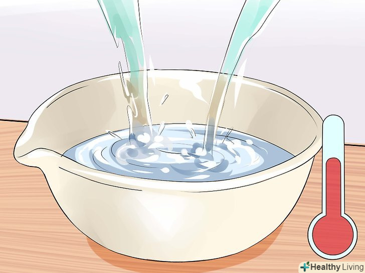Наберіть дуже гарячу воду в умивальник або велику каструлю.найбільш простий спосіб зробити парову ванну полягає в тому, щоб заткнути в умивальнику зливний отвір і заповнити його гарячою водою. Якщо з крана тече не дуже гаряча вода, можна набрати воду в каструлю і довести її до кипіння. При цьому не нахиляйтеся над киплячою водою. Спочатку зніміть каструлю з плити і почекайте, поки вода трохи охолоне.[13]