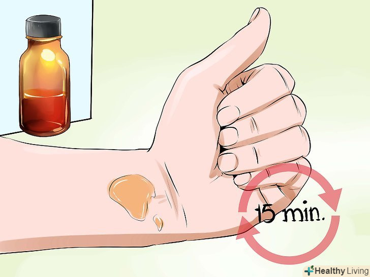 Перш ніж використовувати будь-яке ефірне масло, перевірте його на шкірі.перед використанням масла нанесіть зовсім небагато масла на невелику ділянку шкіри. У деяких людей спостерігається алергія на ефірні масла, тому перед паровою ванною слід переконатися, що у вас немає алергічної реакції. Алергічна реакція часто проявляється у вигляді помірної висипки і, можливо, свербінні.- Щоб перевірити, чи підходить вам те чи інше ефірне масло, нанесіть краплю масла на зап'ясті і почекайте 10-15 хвилин. Якщо обійшлося без роздратування, можна використовувати дане масло. Якщо ж ви помітите почервоніння, набряк або інші ознаки подразнення шкіри, не користуйтеся цим маслом.