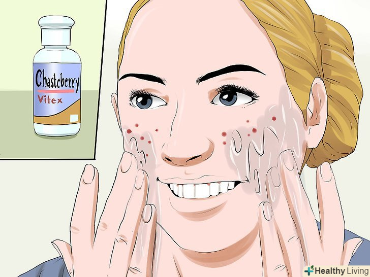 Подумайте про те, щоб приймати Вітекс.Вітекс священний, або Авраамове дерево, дозволяє нормалізувати рівень жіночих гормонів. Було показано, що ця рослина допомагає при передменструальному дисфорическом розладі (ПМДР) і передменструальному синдромі (ПМС). Воно може виявитися корисним і при лікуванні гормональної вугрової висипки. Перш ніж використовувати рослинний засіб, обов'язково проконсультуйтеся з лікарем.[19]
