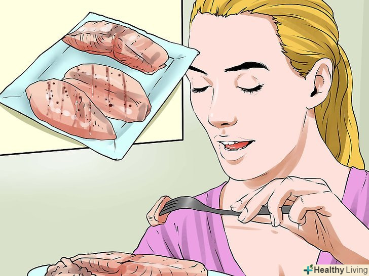 Слідкуйте, щоб ваш раціон був добре збалансований.при гормональної вугрової висипки слід збагатити свій раціон продуктами з низьким глікемічним індексом.[24] постарайтеся їсти достатню кількість продуктів з цільних зерен, фруктів, овочів і нежирної білкової їжі. Утримуйтеся від їжі з високим вмістом цукру і перероблених продуктів, таких як білий хліб, випічка і солодощі. Крім того, для здоров'я шкіри важливі наступні поживні речовини:- Вітамін A;