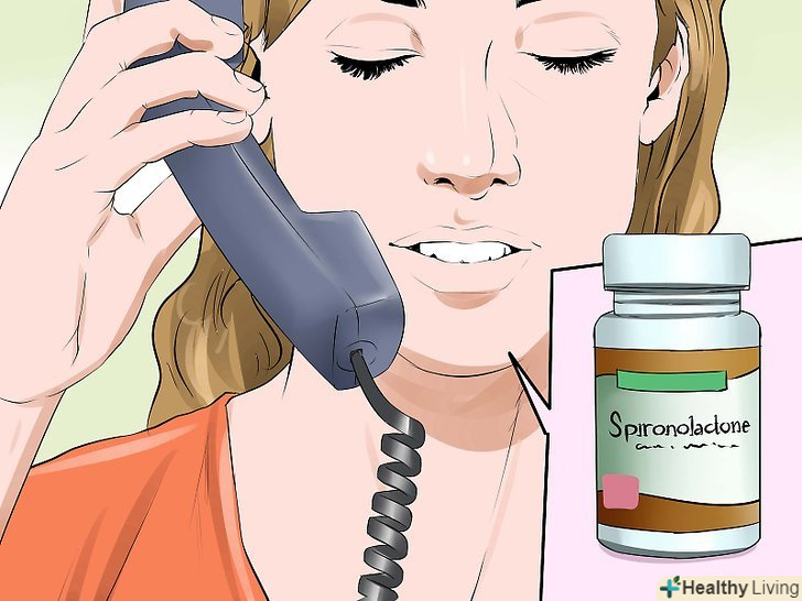 Дізнайтеся у лікаря щодо спіронолактону. Замість пероральних контрацептивів можна приймати спіронолактон. Цей препарат змінює рівень гормонів і має менше побічних ефектів, ніж пероральні протизаплідні засоби. Спіронолактон регулює концентрацію гормонів, які відповідають за вироблення шкірного жиру, тому він може виявитися ефективним засобом для лікування гормональної вугрової висипки.[5]- Врахуйте, що спіронолактон має сечогінну дію, тому його прийом може привести до більш частого сечовипускання. Він здатний також знижувати артеріальний тиск.