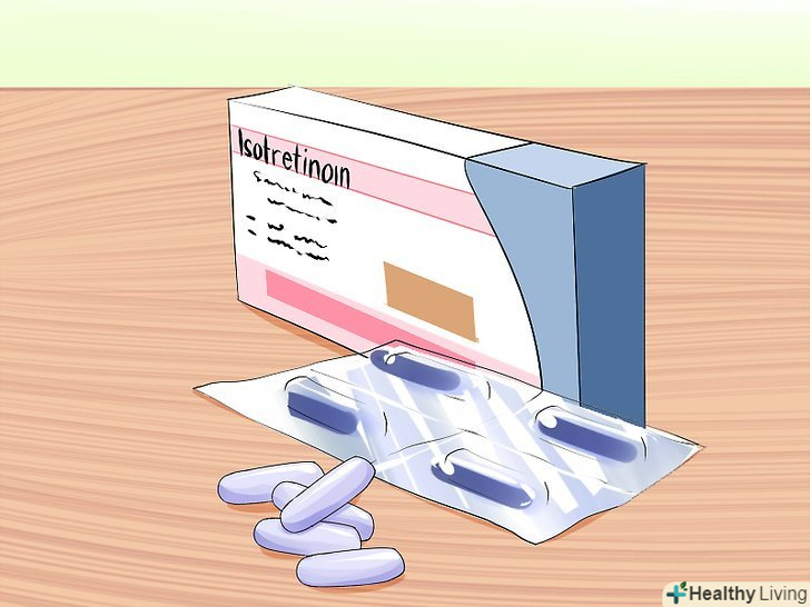 Подумайте про прийом ізотретиноїну.цей препарат є хорошим вибором в тому випадку, якщо не допомагають інші способи. Ізотретиноїн дозволяє позбутися від сильної вугрової висипки буквально за кілька місяців. Однак це засіб має деякі серйозні побічні ефекти, тому до нього слід вдаватися лише в крайніх випадках. Наприклад, ізотретиноїн не слід приймати вагітним або планують вагітність, так як він може привести до розвитку вроджених дефектів. Крім того, даний препарат може викликати наступні побічні ефекти:[6]- Запальні захворювання кишечника, в тому числі виразковий коліт;