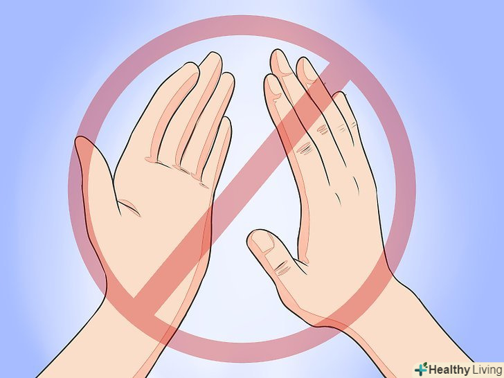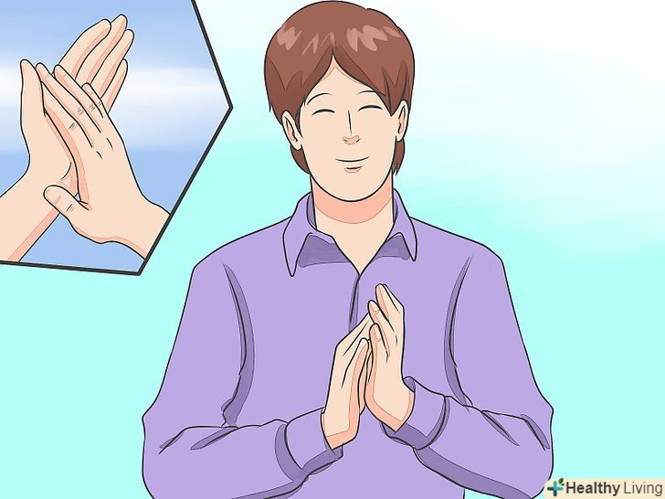 Навчіться плескати в долоні беззвучно.у ситуаціях, коли шум неприпустимий, або аудиторія не здатна чути, можна підняти долоні перед собою і сплести пальці.- Цей спосіб, також застосовуваний для вираження згоди або підтримки оратора, іноді називають "блиск". Він застосовується під час різних зборів, коли не можна перебивати виступаючого.