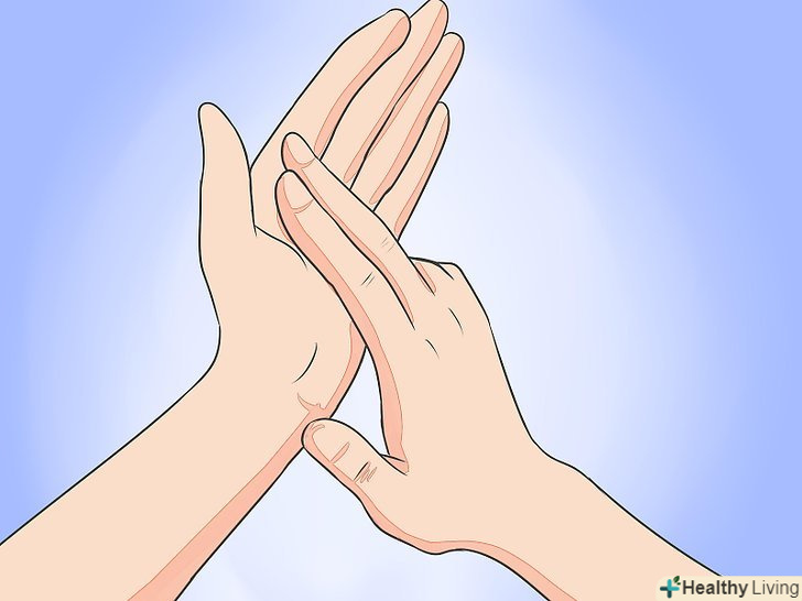 Зробіть основний бавовна.розкрийте долоні і хлопніть ними один об одного, тримаючи пальці догори. Прикладіть достатньо зусиль, щоб при бавовні вийшов досить гучний звук, але не перестарайтеся, щоб ваші долоні не захворіли.- Деякі ляскають, б'ючи пальцями однієї руки об долоню іншої. Робіть так, як вам зручніше.