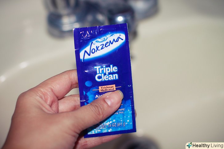 Купіть Очищуючий засіб для шкіри з вмістом саліцилової кислоти або перекису бензолу.Прочитайте склад на етикетці.- Саліцилова кислота і перекис бензолу проникають в жировий шар шкіри, дозволяючи засобу глибоко очистити її.