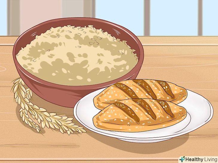 Перейдіть на цільнозернові продукти.харчовими волокнами багатий і такий вид їжі, як зернові продукти. При цьому в цільнозернових продуктах міститься набагато більше поживних речовин, ніж в їх аналогах з очищених зерен.- Які б зернові продукти ви не їли (хліб, рис, макарони і так далі), стежте, щоб вони містили 100% цільних зерен. Така їжа піддається меншій обробці і містить набагато більше харчових волокон, ніж продукти з очищених зерен (такі як білий рис або білий хліб).[12]