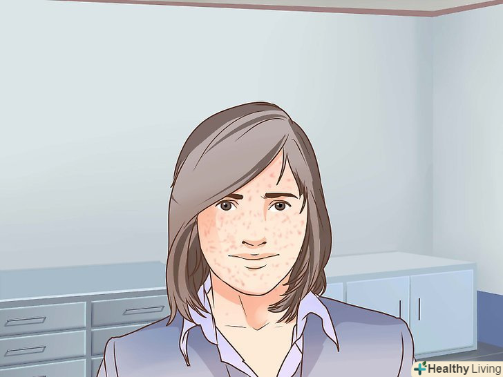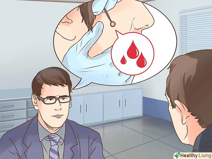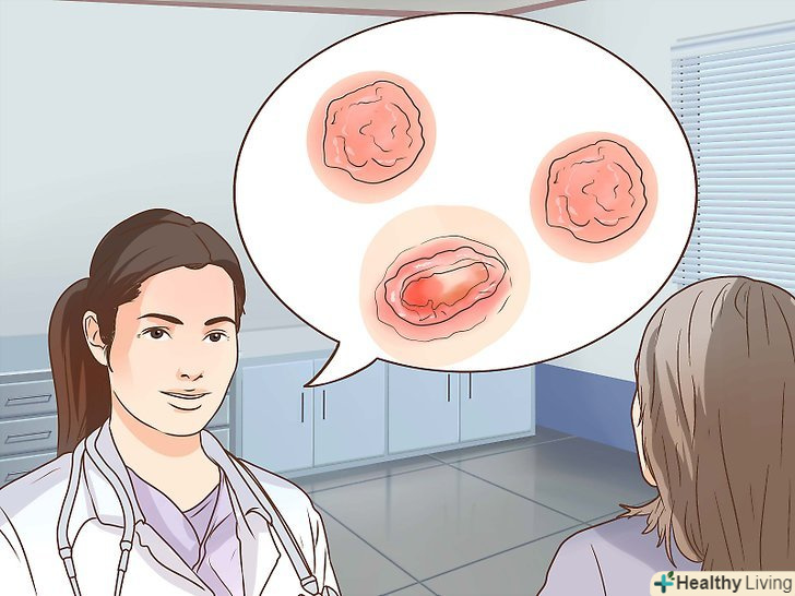Запишіться до терапевта або дерматолога.якщо виявите незвичайні освіти на шкірі, особливо якщо раніше їх не було, або якщо вони видозмінилися, як можна швидше запишіться на прийом до лікаря. Терапевт зможе дізнатися основні захворювання, схожі на рак шкіри (екзема, псоріаз, врослі волосся, бородавки, фіброми), однак, швидше за все, вас направлять до вузького фахівця (дерматолога).[8] Пам'ятайте, що лікування від раку найбільш ефективно при ранньому виявленні.[9]- Щоб діагностувати захворювання, вам призначать біопсію шкіри (у вас візьмуть невелику ділянку шкіри для аналізу і розглянуть його під мікроскопом). Біопсія буває бритвеної і пункційної.