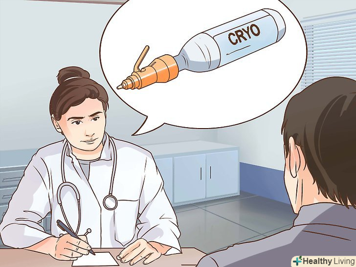 Запитайте свого лікаря про кріохірургію (заморожування).способи лікування раку шкіри бувають різними-все залежить від розміру, типу, глибини і місця метастаз. Дрібні поверхневі освіти видалити найпростіше (їх зрізають або заморожують).[12] якщо вам показана кріохірургія, це означає, що у вас ракові маленькі і безпечні освіти. Лікар обробить пошкоджену ділянку рідким азотом, а потім протягом декількох днів уражені тканини будуть відшаровуватися.- Кріохірургія ефективно бореться з невеликими базальноклітинними і сквамозними карценомами, оскільки вони розташовуються у верхніх шарах шкіри. При глибокій меланомі кріохірургія не показана.