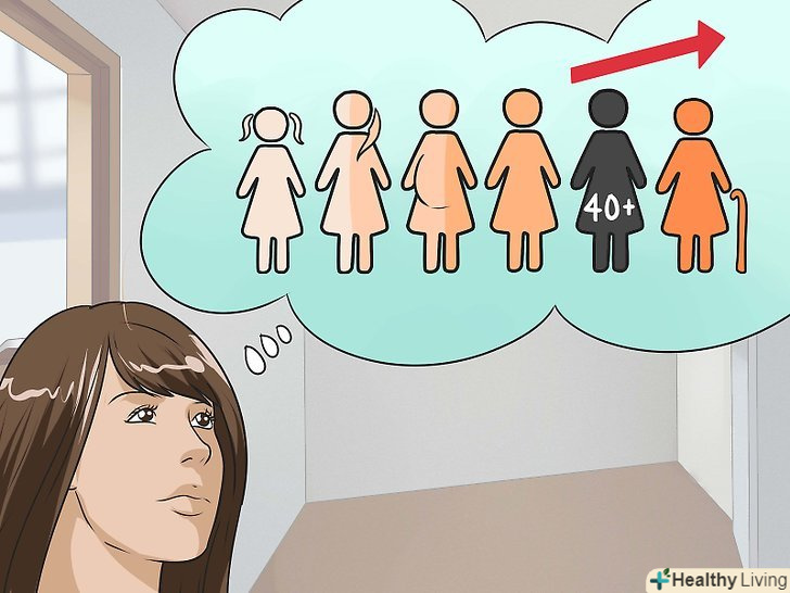 Зрозумійте вплив історії хвороби.існує безліч особливостей вашої історії хвороби, які можуть вплинути на вашу схильність до ризику раку молочної залози. Жінки, які вже мали ракову пухлину в одній грудях, більш схильні до повторного розвитку раку. Люди, які в дитячому віці піддавалися опроміненню в області грудей, також мають підвищену ймовірність розвитку пухлини. Крім того, і інші медичні факти, наприклад, початок місячних у віці 11 років або раніше, може підвищити цей ризик. Початок менопаузи пізніше норми також може бути приводом для побоювань. Якщо жінка проходить гормональну терапію після початку менопаузи або ніколи не була вагітна, це також збільшує ймовірність розвитку у неї раку грудей.[16]