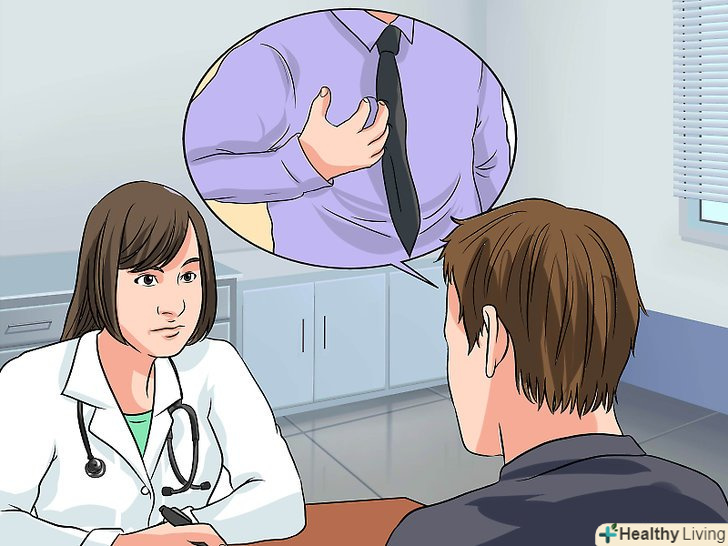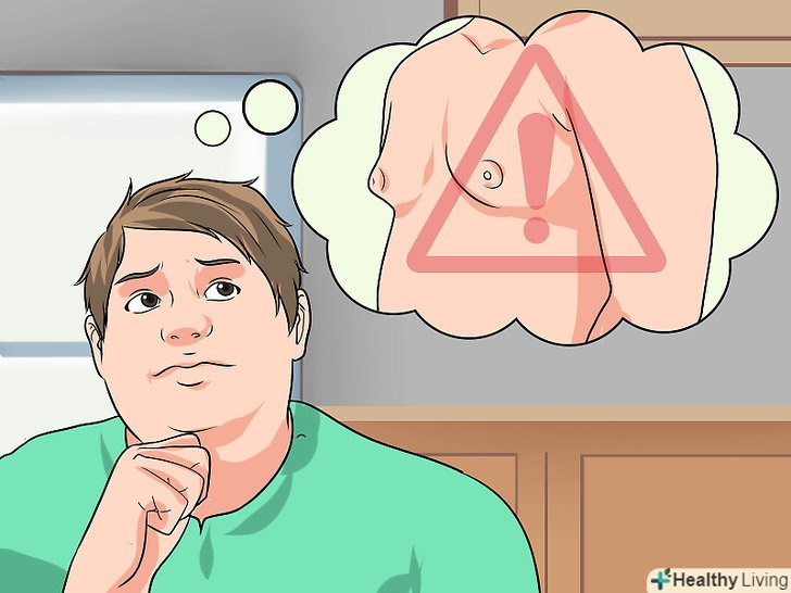 Знайте, що таке гінекомастія.якщо груди збільшилася з обох сторін, це означає, що у вас гінекомастія. Це не рак грудей, хоча груди можуть істотно збільшитися. Найчастіше гінекомастію викликають препарати, надмірне вживання алкоголю, вживання марихуани і набір ваги. Гінекомастія не означає, що у вас рак, проте проводилися дослідження, результати яких вказують на те, що цей стан може підвищувати ризик розвитку раку.[8] якщо ви переживаєте через збільшення грудей, запишіться на прийом до лікаря.[9]