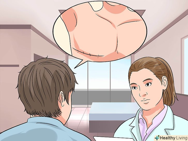 - Промацайте всі ущільнення і запам'ятайте, де ви їх знайшли. Це допоможе лікарю швидше виявити їх при огляді. Уважно огляньте шкіру-це дозволить помітити інші ознаки, включаючи зморшки, ямки, лущення шкіри.