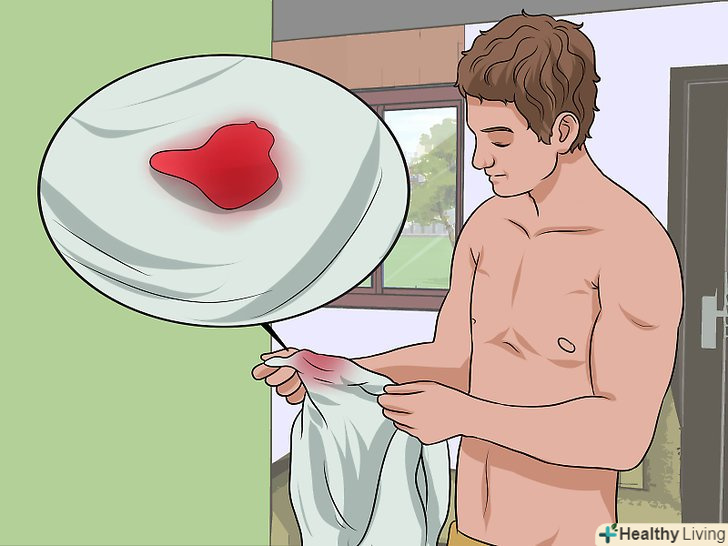 Зверніть увагу на біль і виділення.важливо не тільки оглядати шкіру, але і звертати увагу на відчуття в грудях. Також пам'ятайте про можливість прозорих або кривавих виділень. Всі ці симптоми можуть вказувати на рак грудей, особливо якщо вони зберігаються довгий час.[6]- Зверніть увагу на вологі плями на сорочках і майках — вони можуть бути ознакою виділень. Якщо оглядати груди регулярно, можна помітити виділення візуально.
