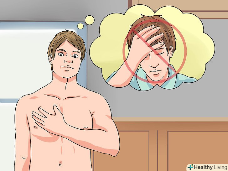 Будьте впевненим у собі чоловіком.хоча рак грудей розвивається у чоловіків рідко, якщо у вас є схильність або симптоми, вам слід регулярно проводити самостійний огляд. Не соромтеся стежити за здоров'ям і не думайте, що це робить вас менш мужнім. Рак грудей може вражати людей обох статей, і ні рак, ні самоогляд ніяк не впливають на вашу мужність.
