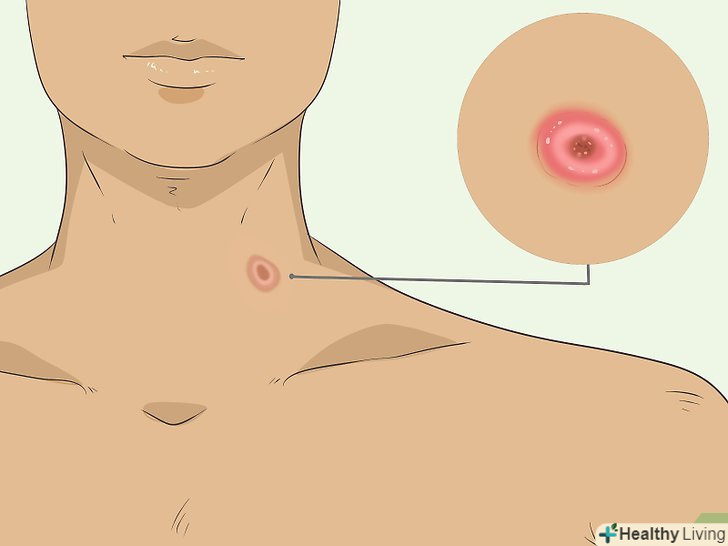 Огляньте шкіру на наявність ознак базаліоми (базальноклітинного раку).базаліома-одна з найбільш поширених форм раку шкіри. Найчастіше її виявляють на областях шкіри голови, які найсильніше схильні до впливу сонячних променів, включаючи вуха і шию. За своєю природою ця форма раку шкіри ерозивна, тобто вона як би «роз'їдає» ділянку шкіри, на якому виникає. Він метастазує по організму або поширюється на інші ділянки шкіри. Серед факторів ризику відзначають вплив сонячних променів, часті походи в солярій, схильність до веснянок, світлу шкіру, кількість опіків шкіри, які ви отримали за життя, а також куріння в минулому.- Поразки можуть бути плоскими або злегка піднятими, рожевого або тілесного кольору, вони легко кровоточать, на поверхні можна виявити свого роду невеликі вдавлення. Зовні такі освіти можуть нагадувати просто ділянки пошкодженої шкіри, вони можуть виглядати, як звичайні ранки, які кровоточать, покриваються кірками і довго не гояться. Зазвичай елементи базаліоми досягають в розмірах від одного до двох сантиметрів.[4]