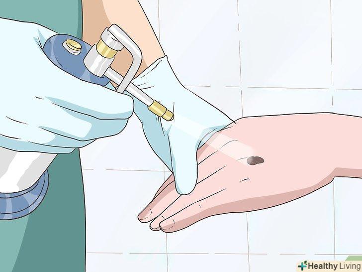 Вилікуйте передракові стани.якщо ви з'ясували, що у вас актинічний кератоз, необхідно зайнятися лікуванням, щоб він не переродився в плоскоклітинний рак. Якщо мова йде про одиночному ураженні при актинічному кератозі, лікування буде не таким вже складним, але, якщо ми говоримо про множинних ураженнях, їх лікування і обробка буде менш ефективною. Замість цього такі поразки можна залишити під наглядом. Поспостерігайте динаміку цих уражень якийсь час, поки приймаєте рішення про метод лікування.- Є спосіб видалення актинічного кератозу за допомогою кріотерапії-процедури, при якій лікар «заморожує» пошкодження рідким азотом. Можливо, вам запропонують інший спосіб лікування-електродисекцію з кюретажем. При цій процедурі відбувається своєрідне припікання поразки, а потім його видалення скальпелем. Для видалення одиночного ураження застосовується також процедура лазерної шліфовки або аплікації фторурацилу.[12]