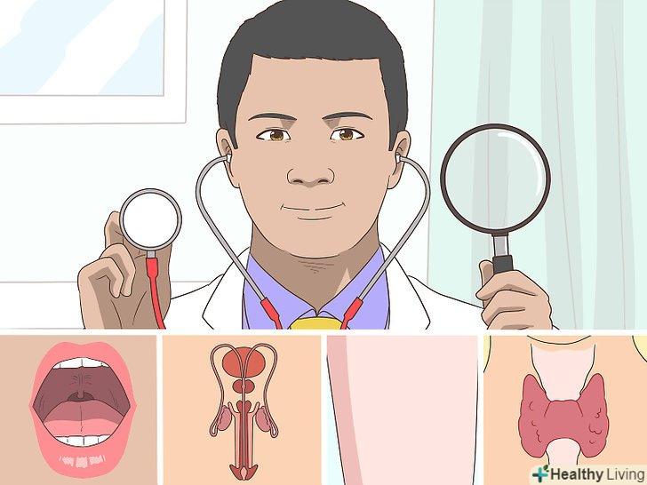 Регулярно перевіряйте стан здоров'я у лікаря.у тому числі це передбачає візити до стоматолога, в результаті яких може бути виявлений рак ротової порожнини. Регулярне відвідування терапевта дозволить вам задати йому питання про фактори ризику для розвитку раку, отримати інформацію про діагностичні тести і перевірити окремі симптоми. Виявлення раку на ранній стадії або передракових станів дозволить забезпечити найбільші шанси на успішне лікування. У разі необхідності звичайний терапевт може призначити вам відповідні діагностичні процедури для виявлення раку ротової порожнини, репродуктивних органів, шкіри, щитовидної залози та інших органів.[35]